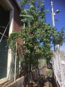 5m程に伸びた木、その他生い茂った木を根元の方から切らせて頂きました。